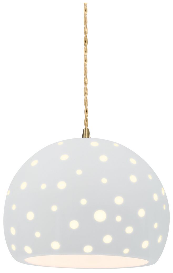 Perforated Globe 7"W Gloss White, Antique Brass Pendant - Rigid Stem
