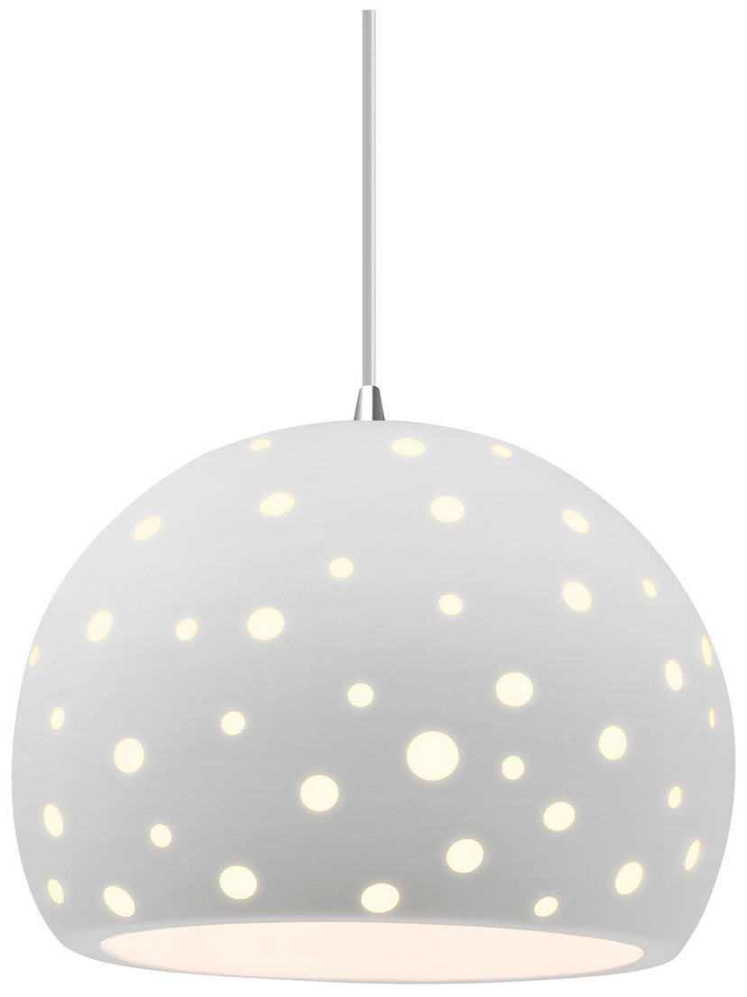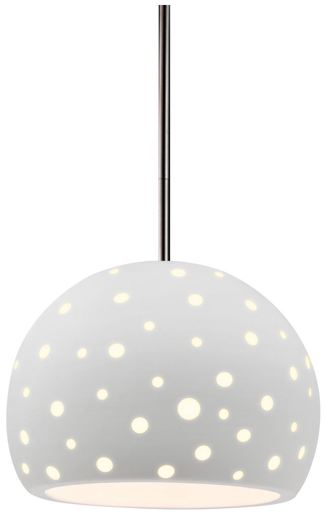 Perforated Globe 7"W Bisque, Brushed Nickel Pendant - White Cord