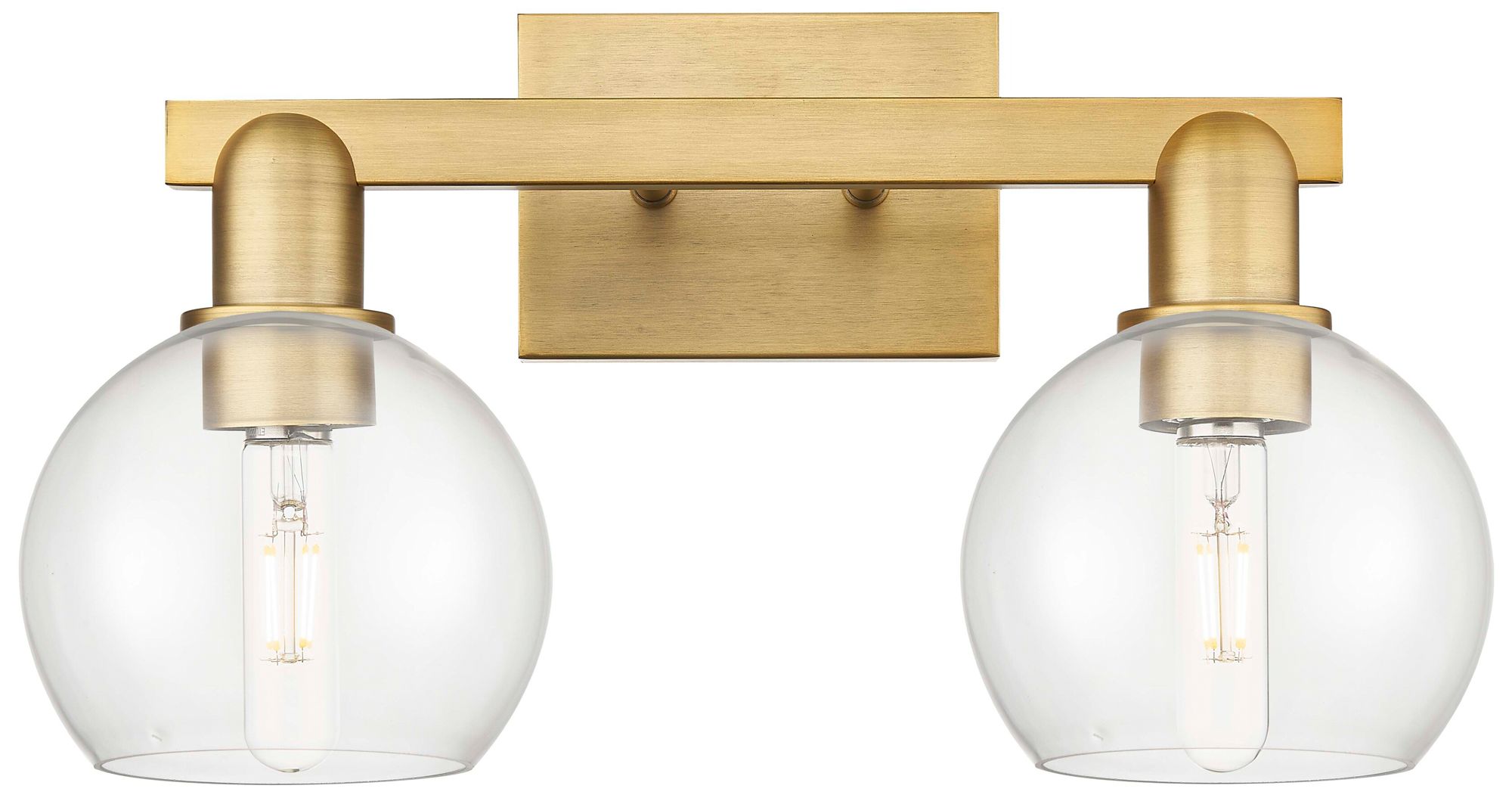 Arcadia Athens 17"W 2 Light Brushed Brass Bath Light With Clear Shade