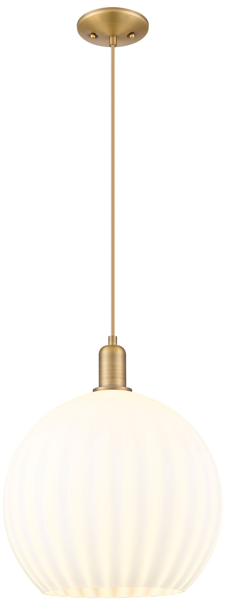 Arcadia White Venetian 14" Wide Brushed Brass Cord Hung Mini Pendant