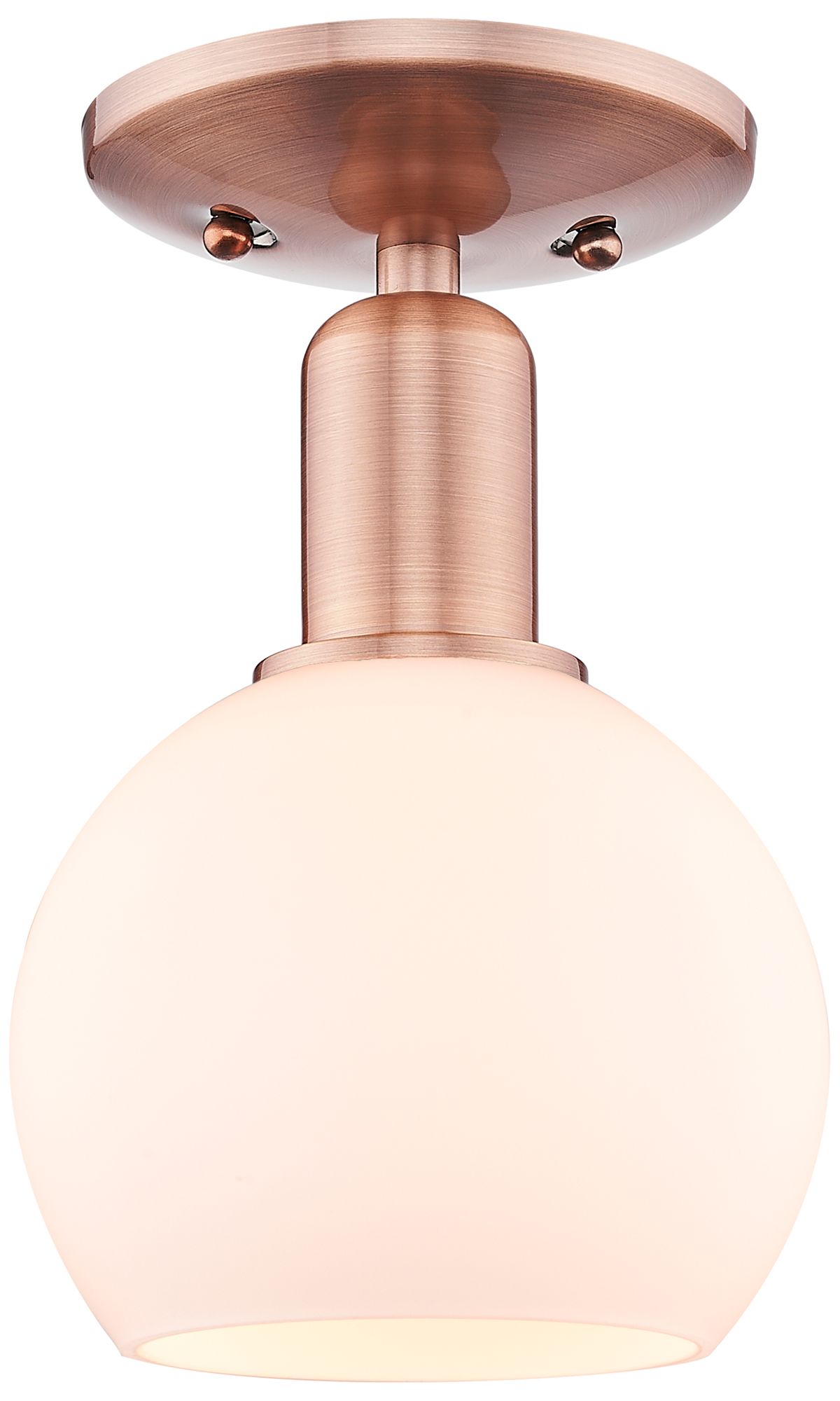Arcadia Athens 6"W Copper Semi.Flush Mount With Matte White Shade