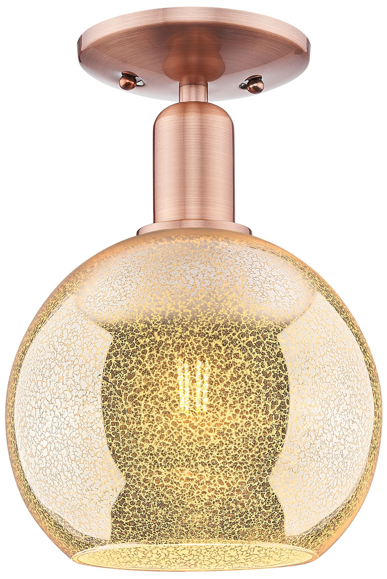 Arcadia Athens 8"W Antique Copper Semi.Flush Mount With Mercury Shade