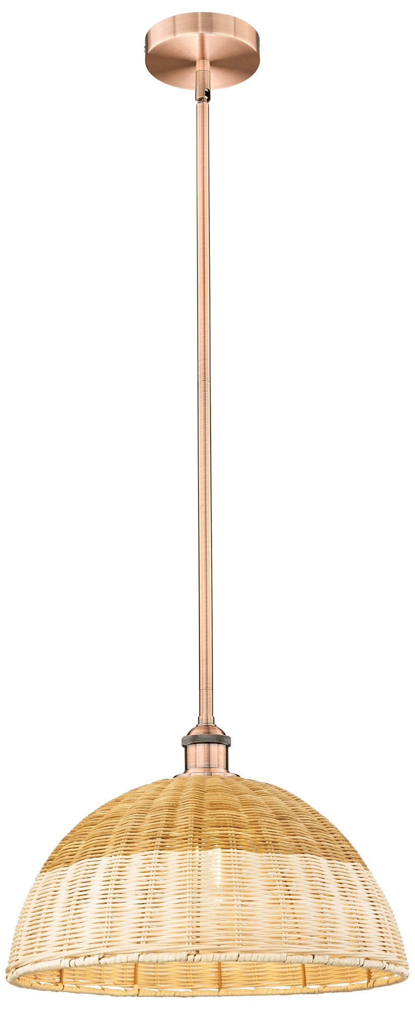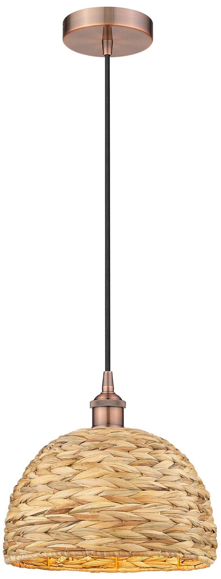 Edison Woven Rattan 12" Wide Antique Copper Cord Hung Mini Pendant