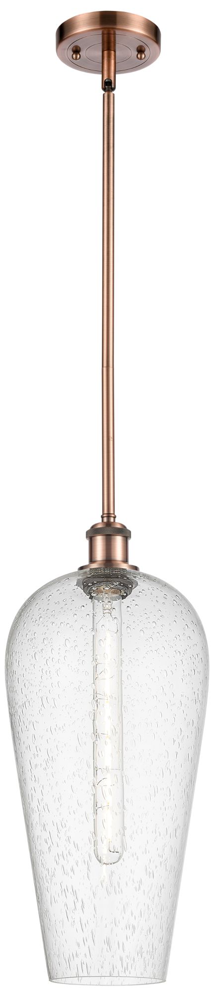 Chelsea 8" Wide Antique Copper Stem Hung Mini Pendant with Seedy Shade