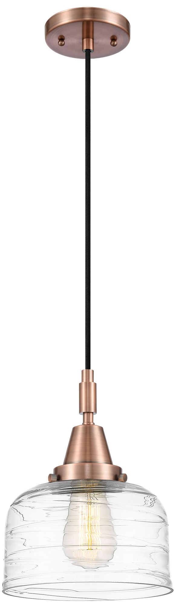 Downtown Caden Bell 8"W Cord Copper Mini Pendant w/ Clear Swirl Shade