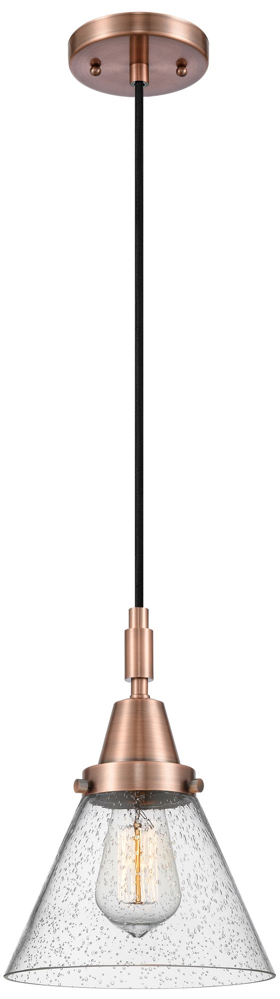 Downtown Caden Cone 8"W Cord Copper Mini Pendant w/ Seedy Shade