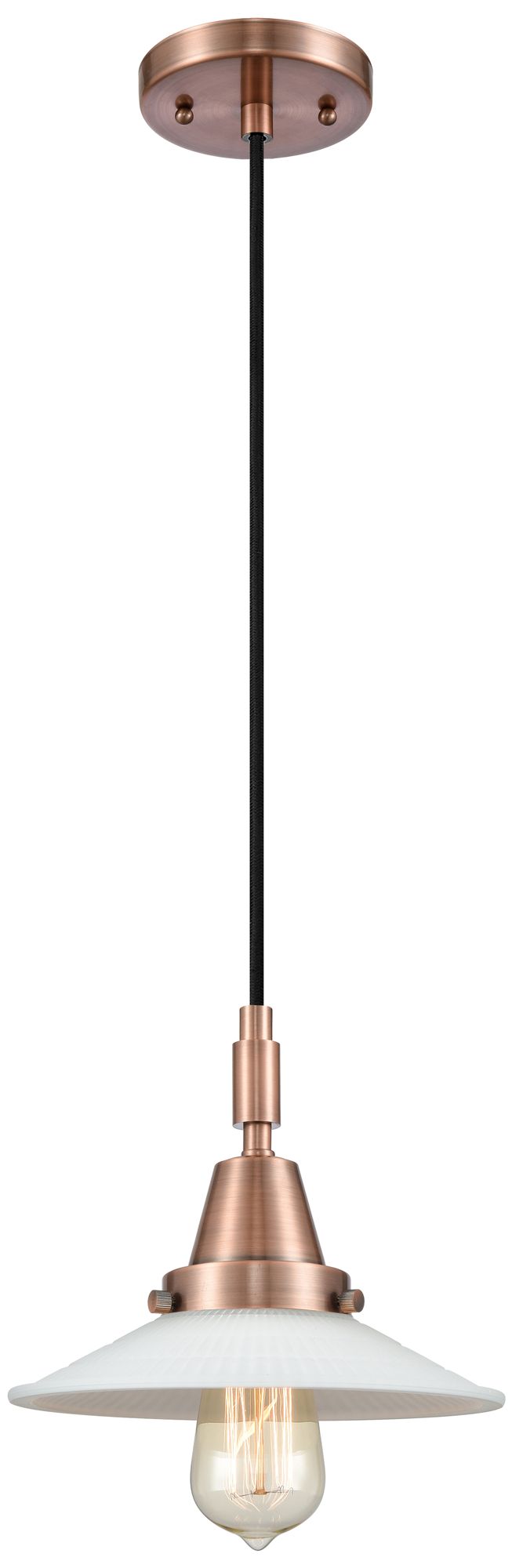 Downtown Halophane 9"W Cord Copper Pendant w/ Matte White Shade