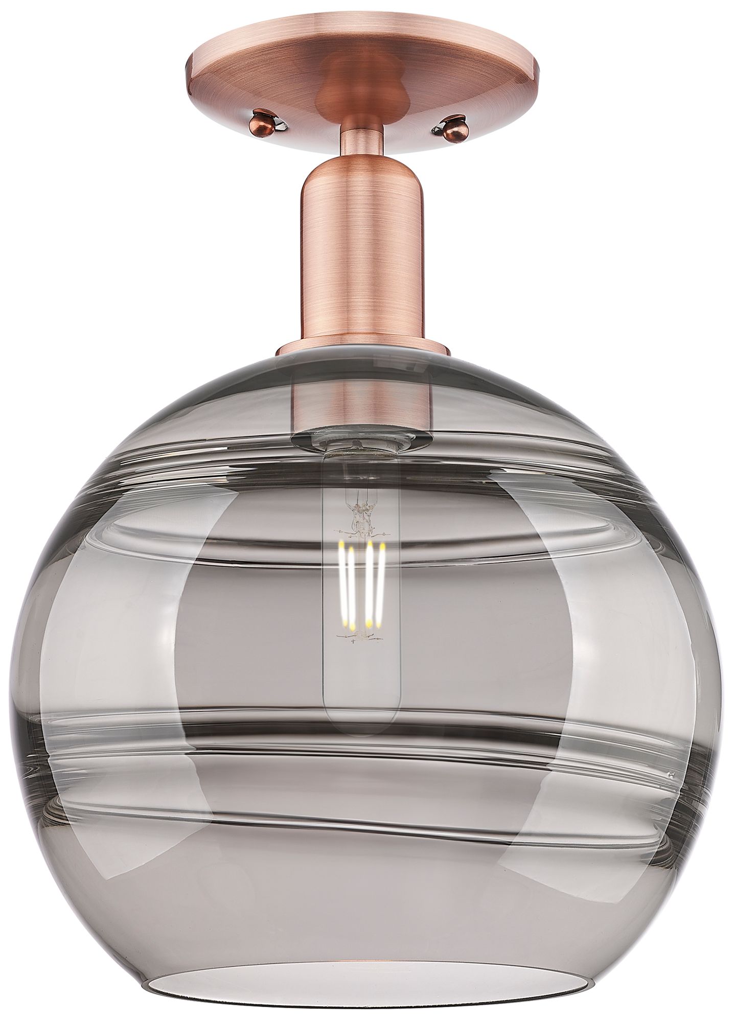 Arcadia Rochester 10"W Copper Semi.Flush Mount With Light Smoke Shade