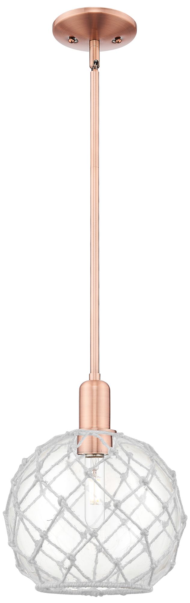 Arcadia Farmhouse Rope 10"W Copper Stem Pendant w/ Clear White Shade