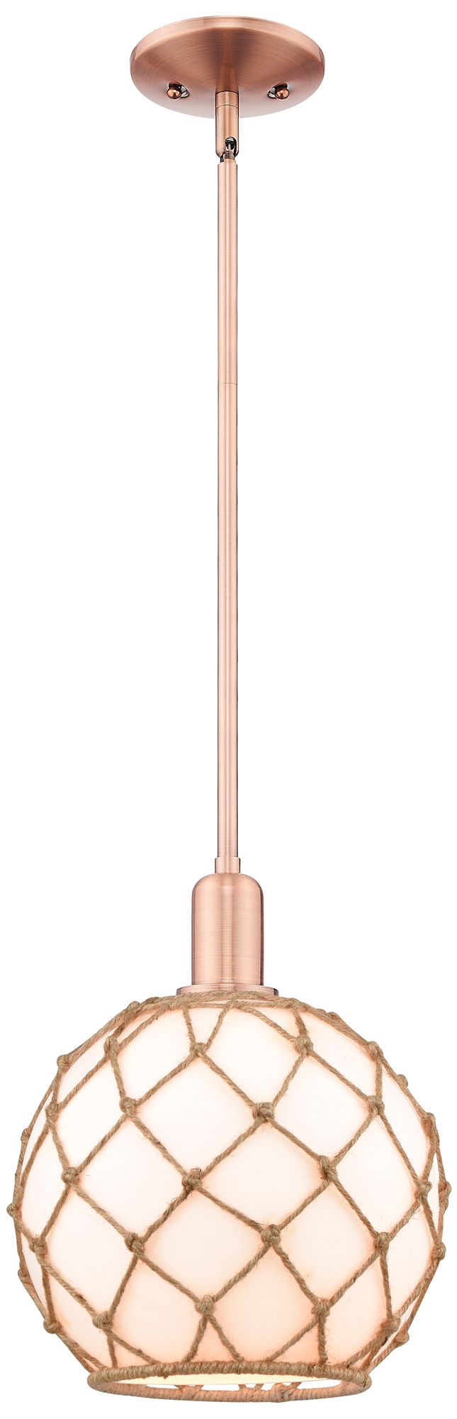 Arcadia Farmhouse Rope 10"W Copper Stem Pendant w/ White Brown Shade
