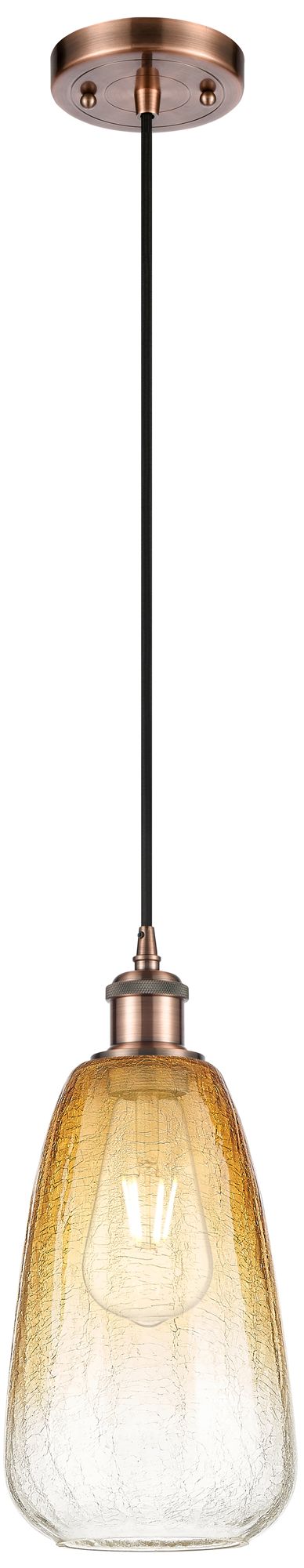 Ballston Brookhaven Almond 6"W Copper Cord Mini Pendant w/ Amber Shade