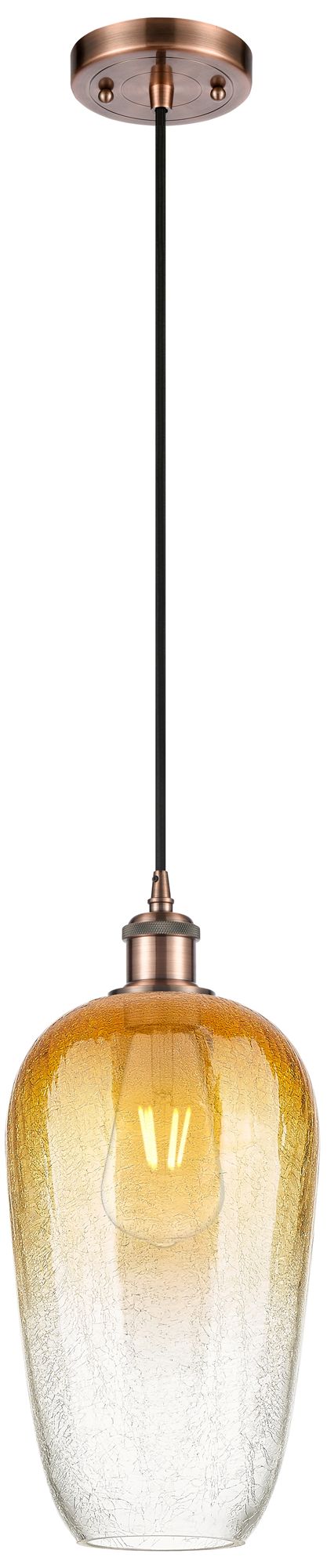 Ballston Brookhaven Flute 7"W Copper Cord Mini Pendant w/ Amber Shade