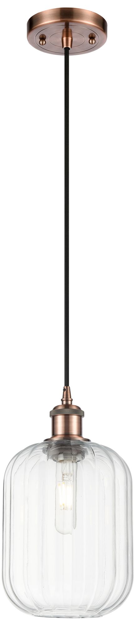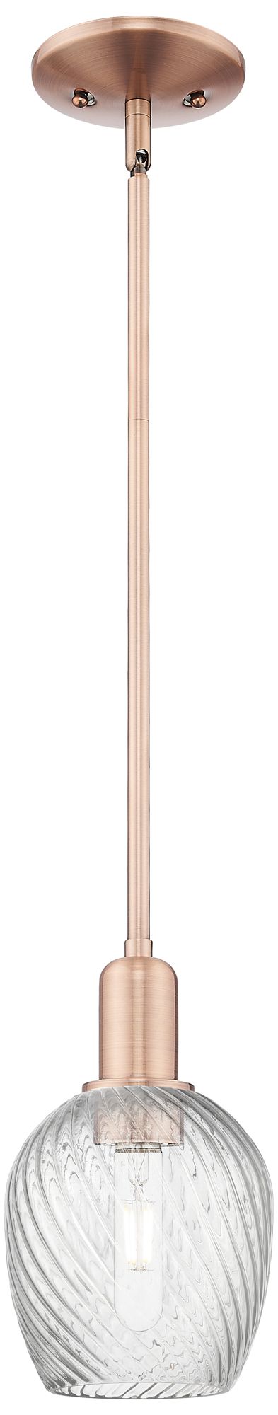 Arcadia Salina 6"W Copper Stem Pendant w/ Clear Spiral Fluted Shade