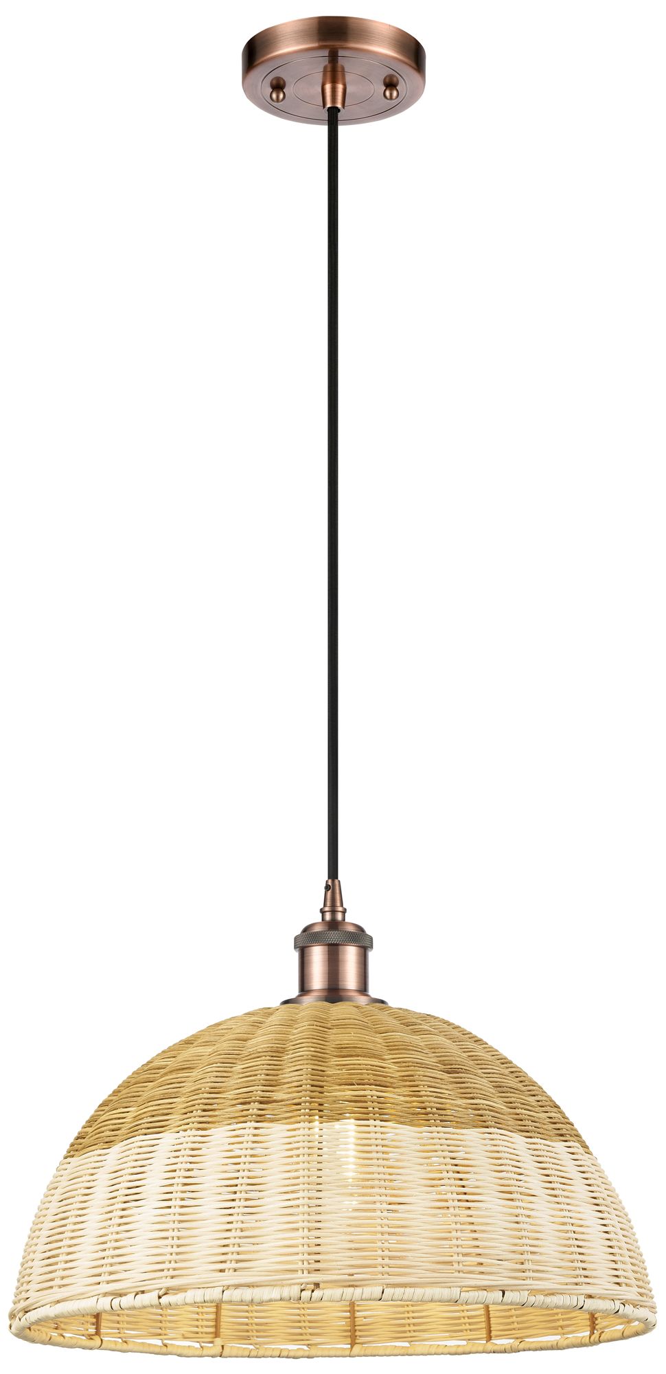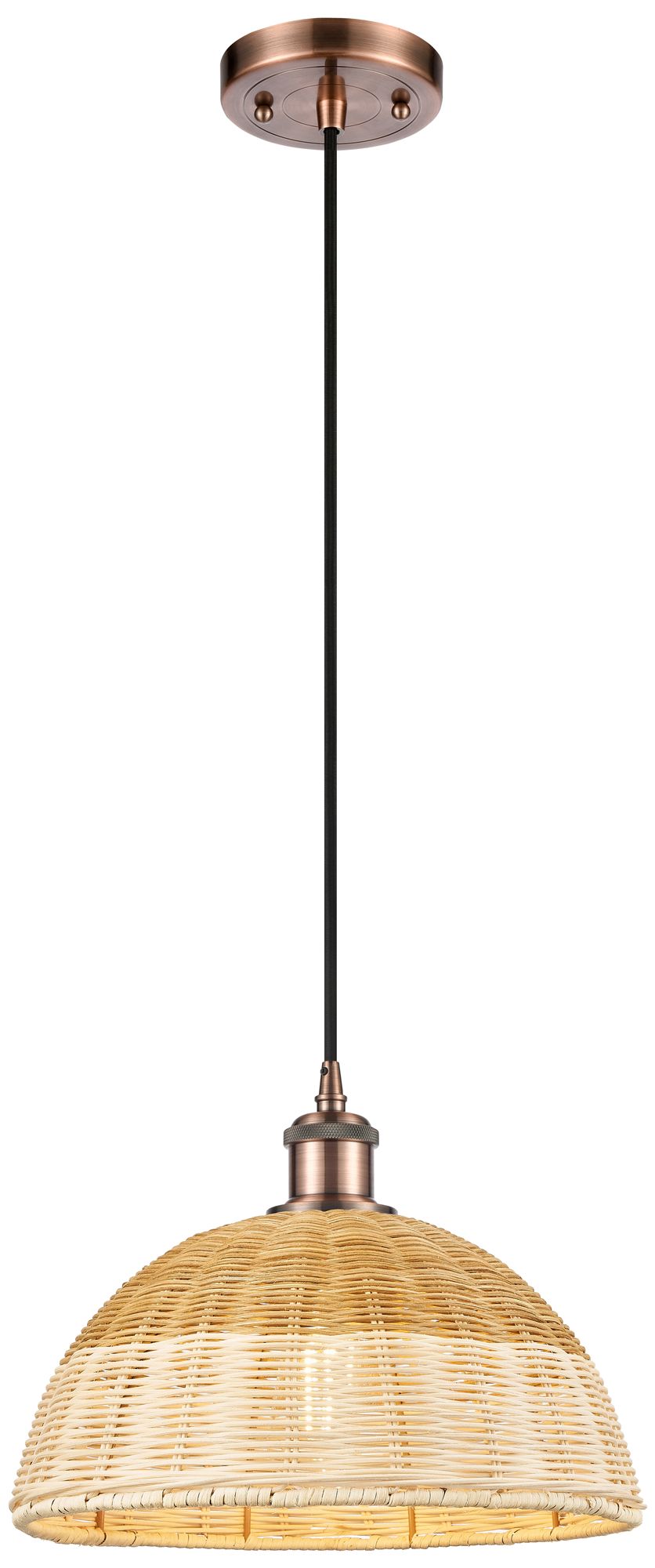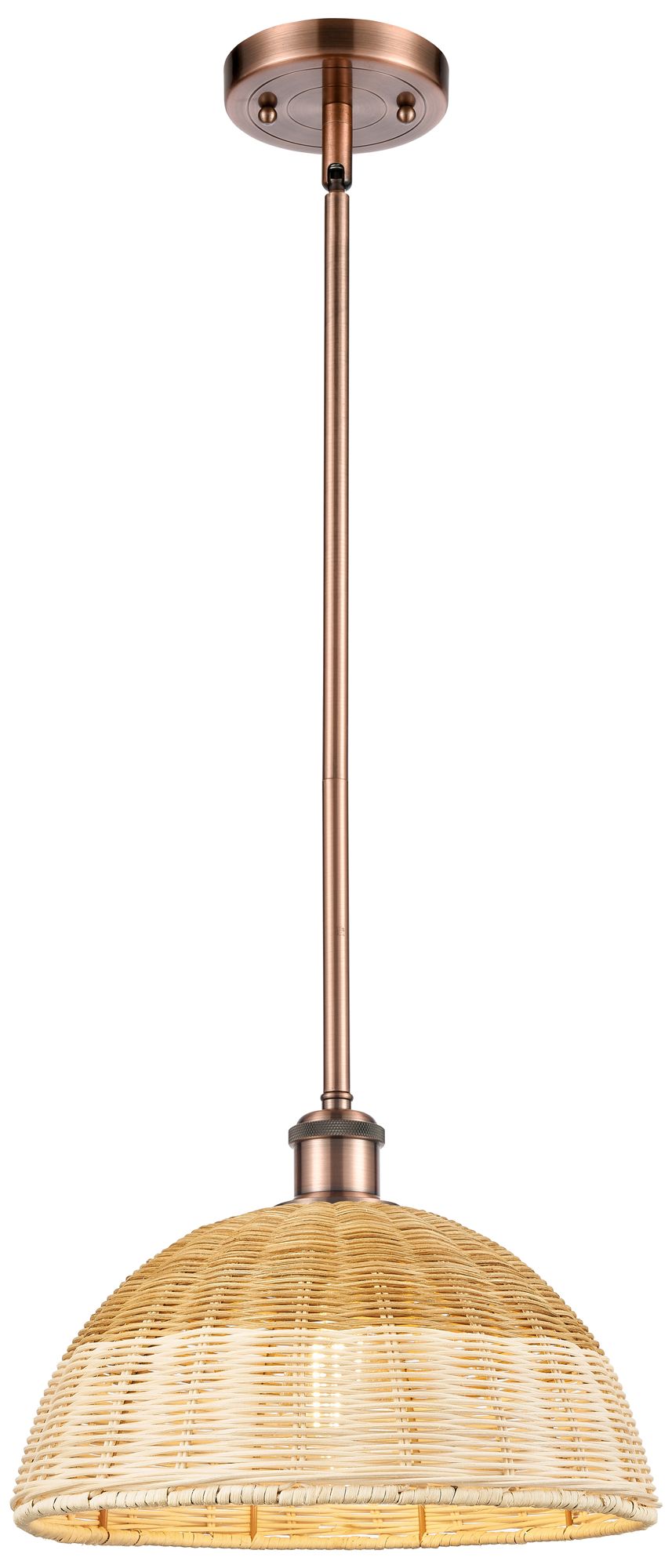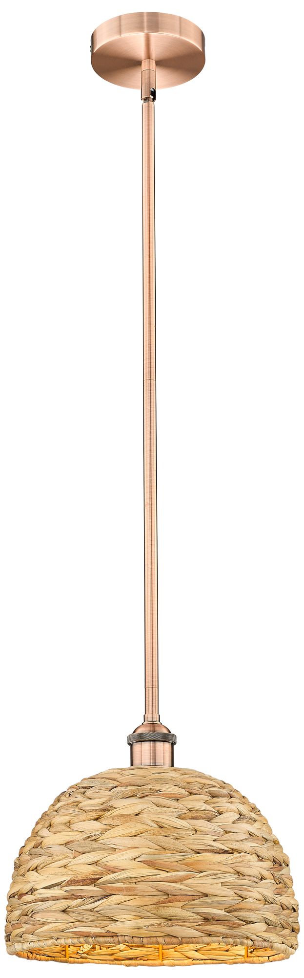 Edison Woven Rattan 12" Wide Antique Copper Stem Hung Mini Pendant