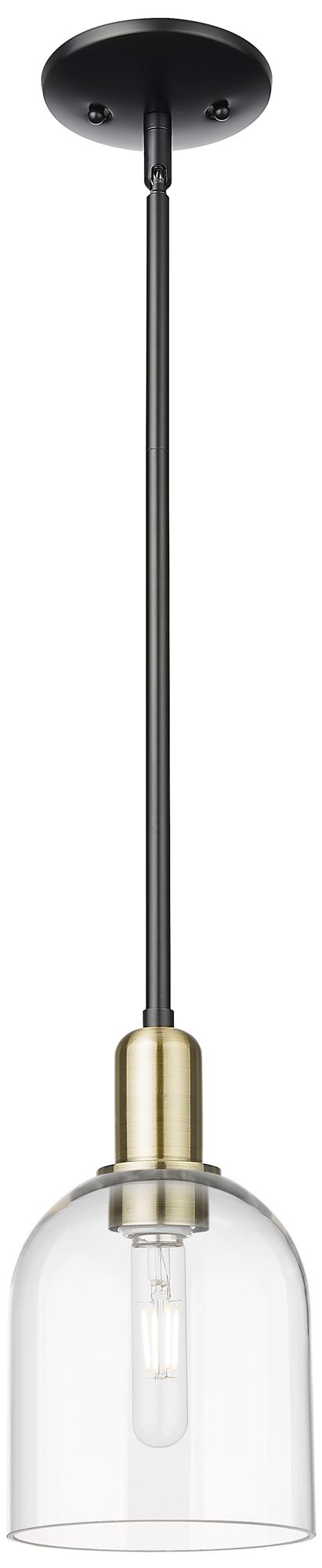 Arcadia Bella 6"W Black Brass Stem Hung Mini Pendant w/ Clear Shade