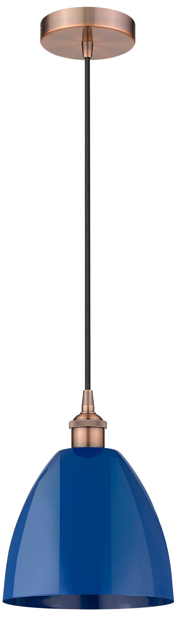 Edison Plymouth Dome 9"W Copper Cord Hung Mini Pendant w/ Blue Shade