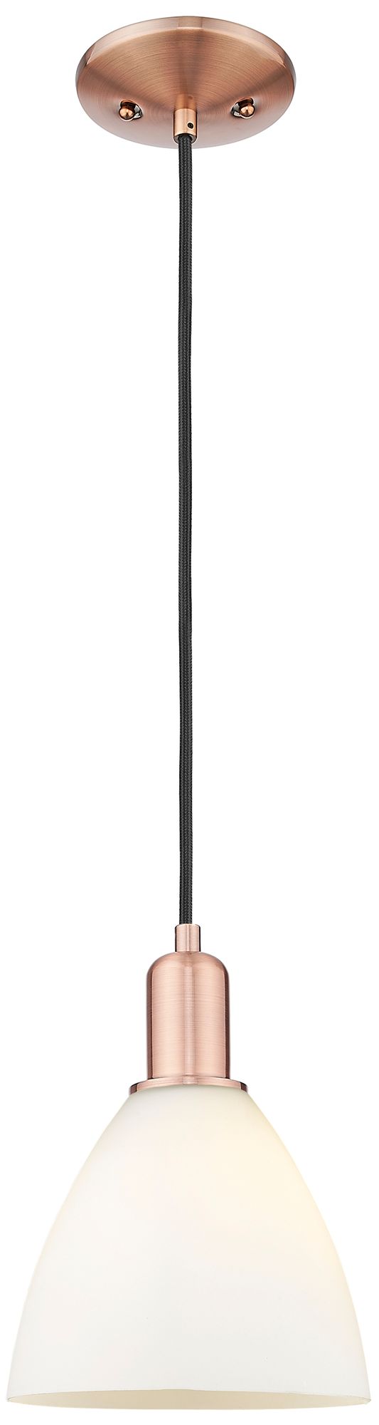 Arcadia Bristol 8"W Copper Cord Hung Mini Pendant w/ Matte White Shade