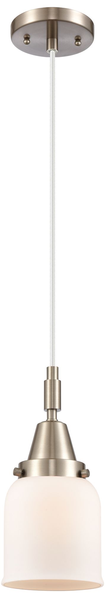 Downtown Caden Bell 5"W Cord Satin Nickel Mini Pendant w/ White Shade
