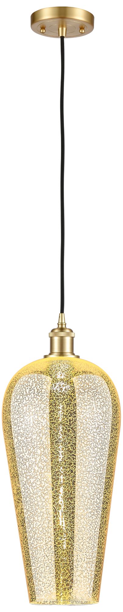 Chelsea 8" Wide Satin Gold Cord Hung Mini Pendant with Mercury Shade