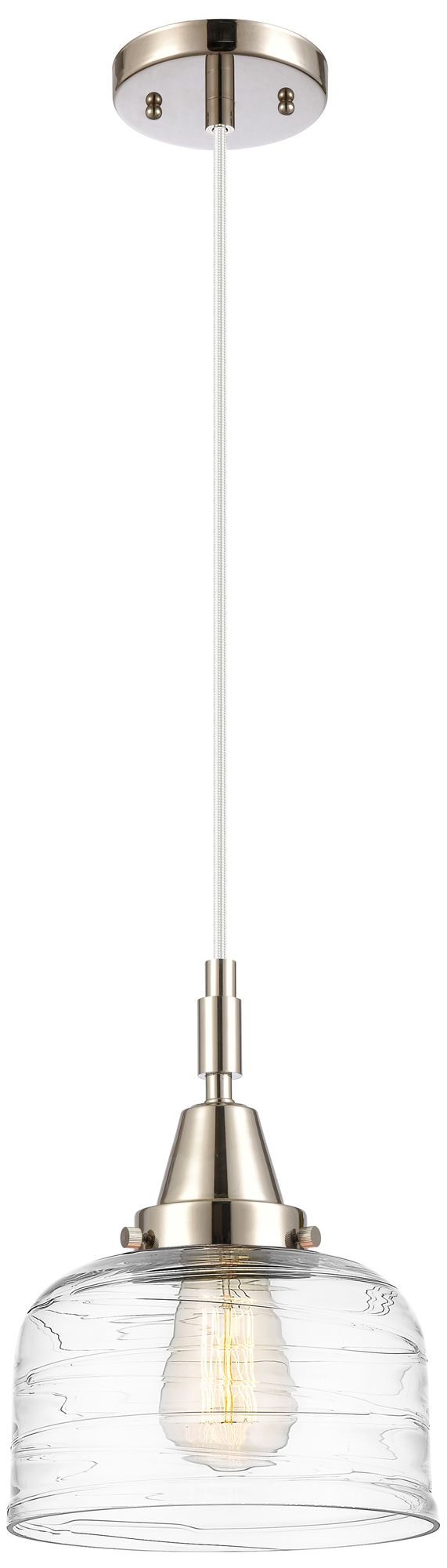 Downtown Caden Bell 8"W Cord Nickel Mini Pendant w/ Clear Swirl Shade
