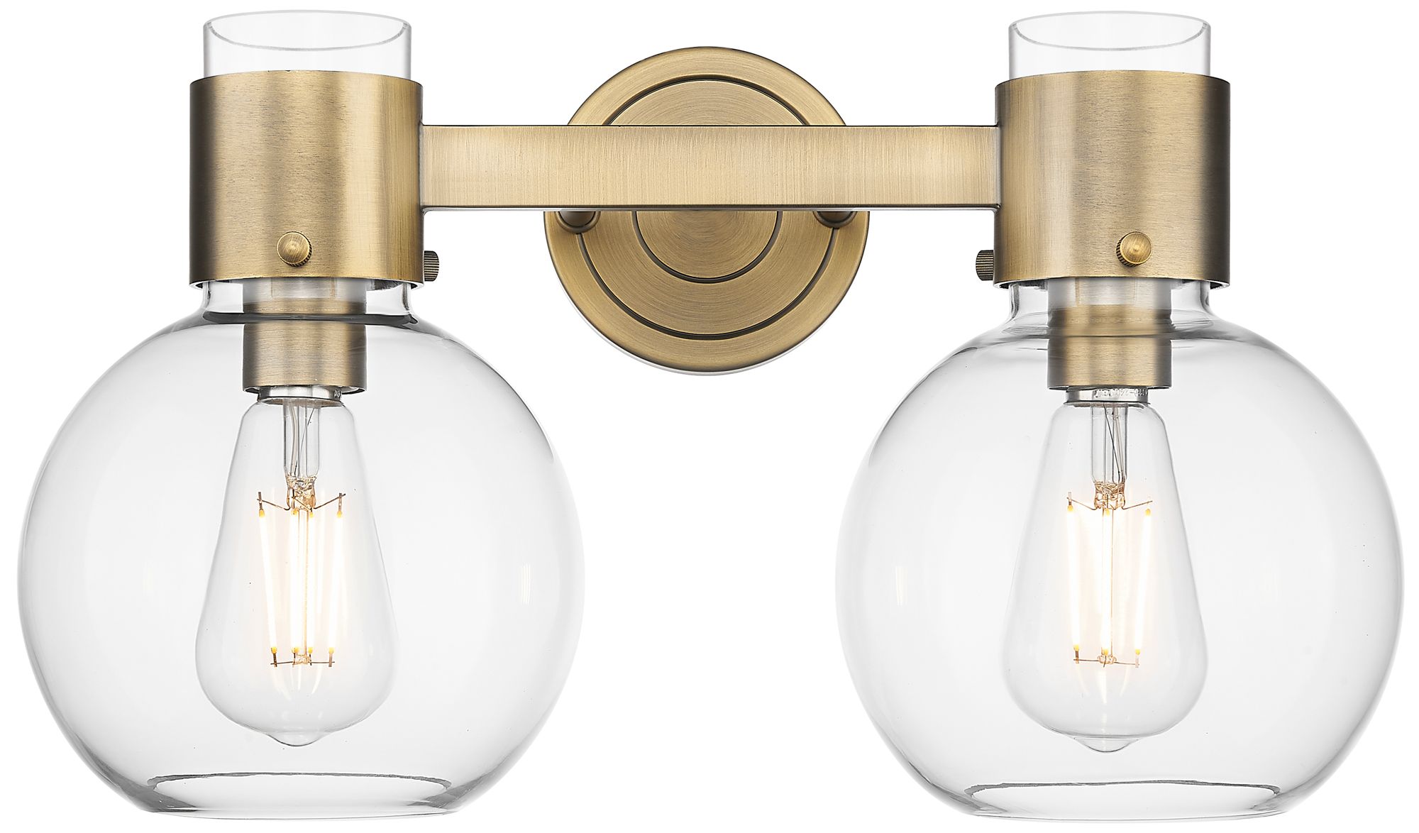 Downtown Lawton Sphere 16"W 2 Light Brass Vanity Light w/ Clear Shade