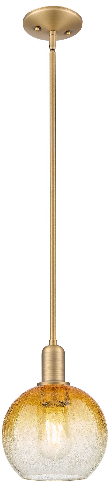 Downtown Brookhaven Globe 8"W Brass Mini Pendant w/ Amber Shade