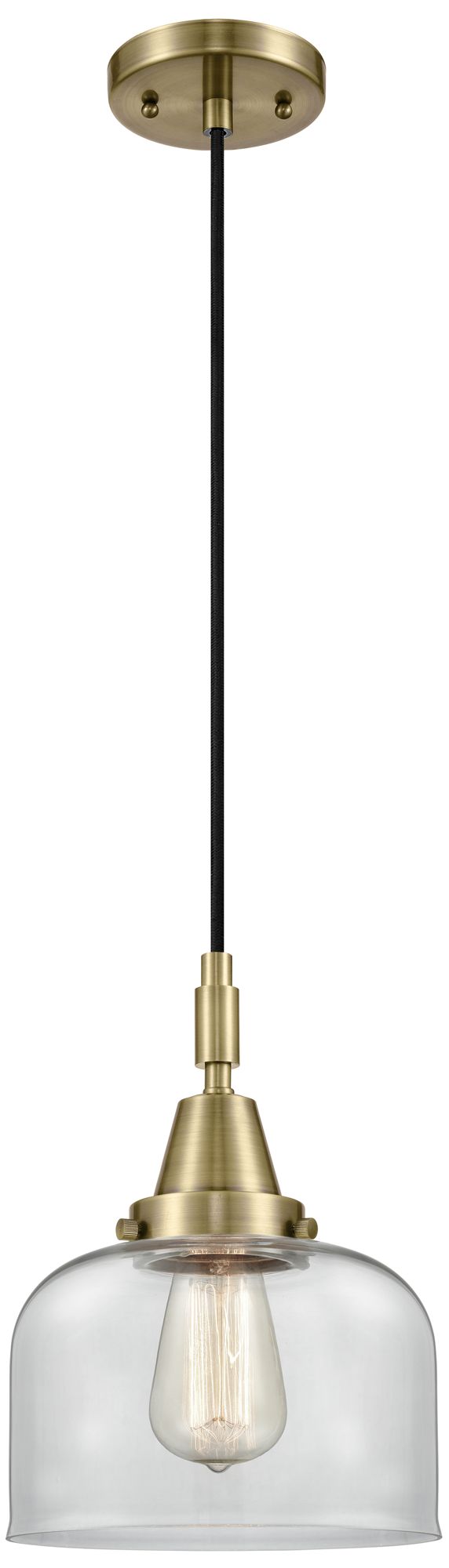 Downtown Caden Bell 8"W Cord Antique Brass Mini Pendant w/ Clear Shade