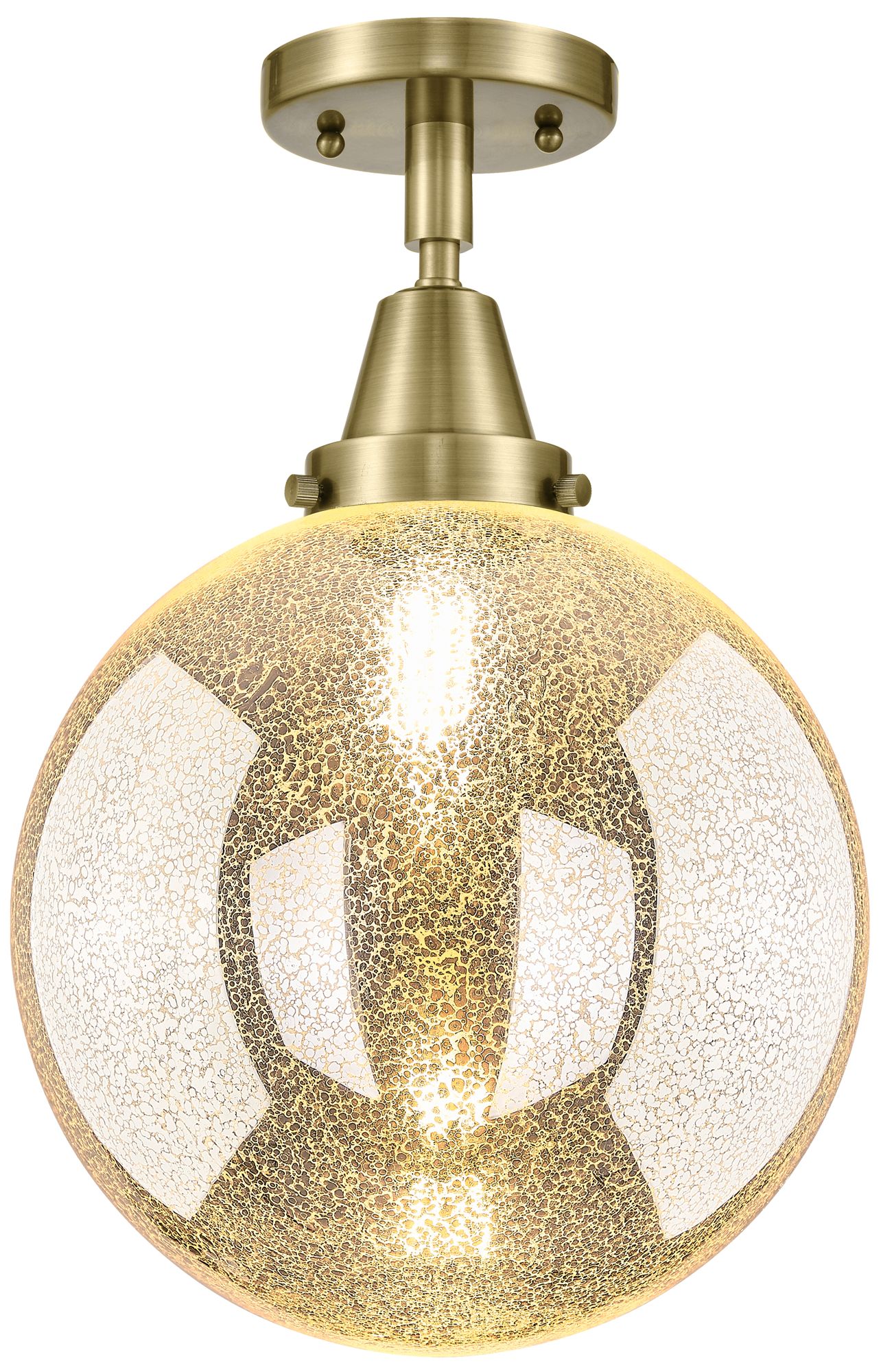 Caden Beacon 12" Wide Antique Brass Flush Mount With Mercury Shade