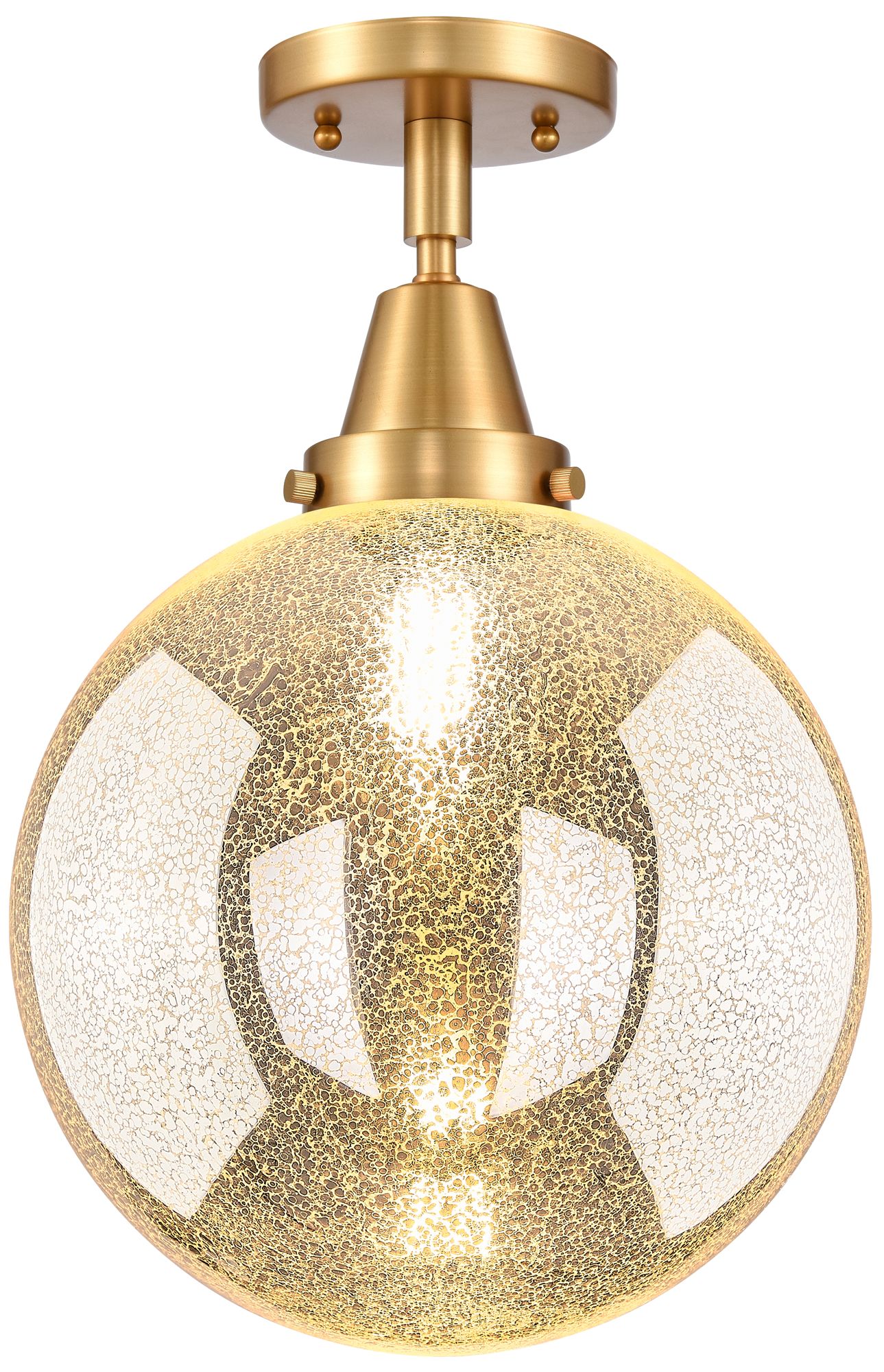 Downtown Caden Beacon 10"W Satin Gold Flush Mount w/ Mercury Shade