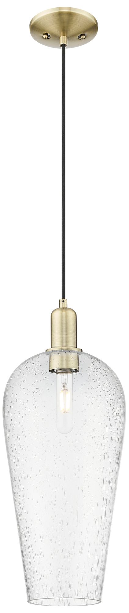 Chelsea 8" Wide Antique Brass Cord Hung Mini Pendant With Seedy Shade