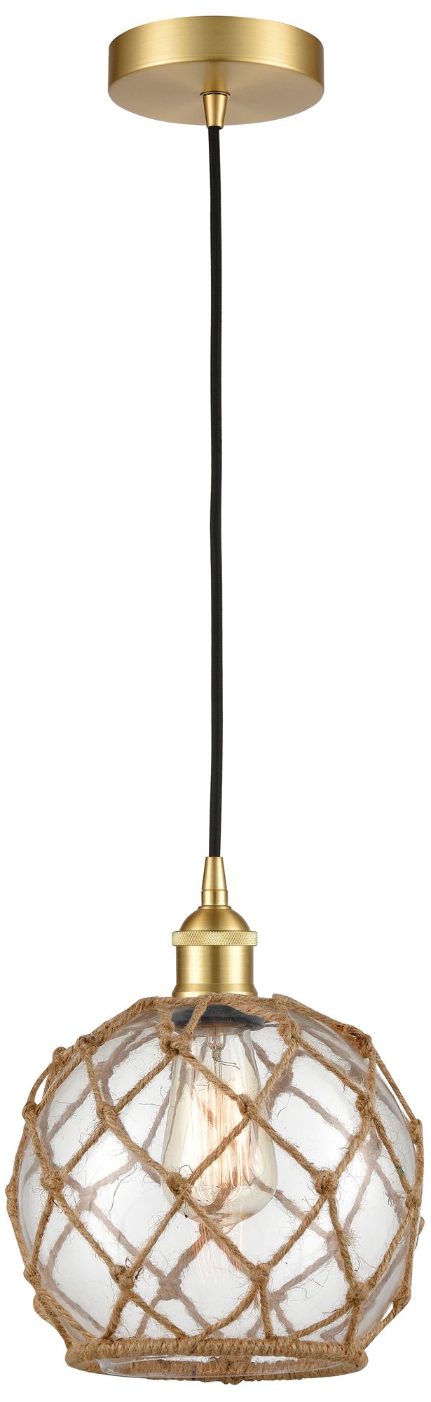 Edison Farmhouse 8" Gold Corded Mini Pendant w/ Clear & Brown Rope