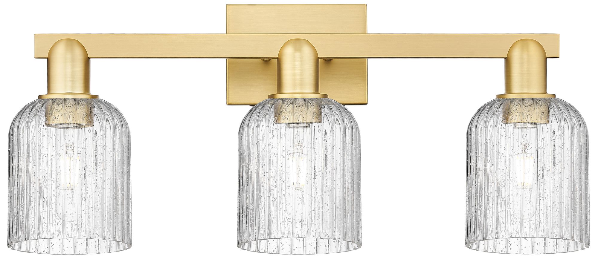 Bridal Veil 24"W 3 Light Satin Gold Bath Vanity Light With Seedy Shade