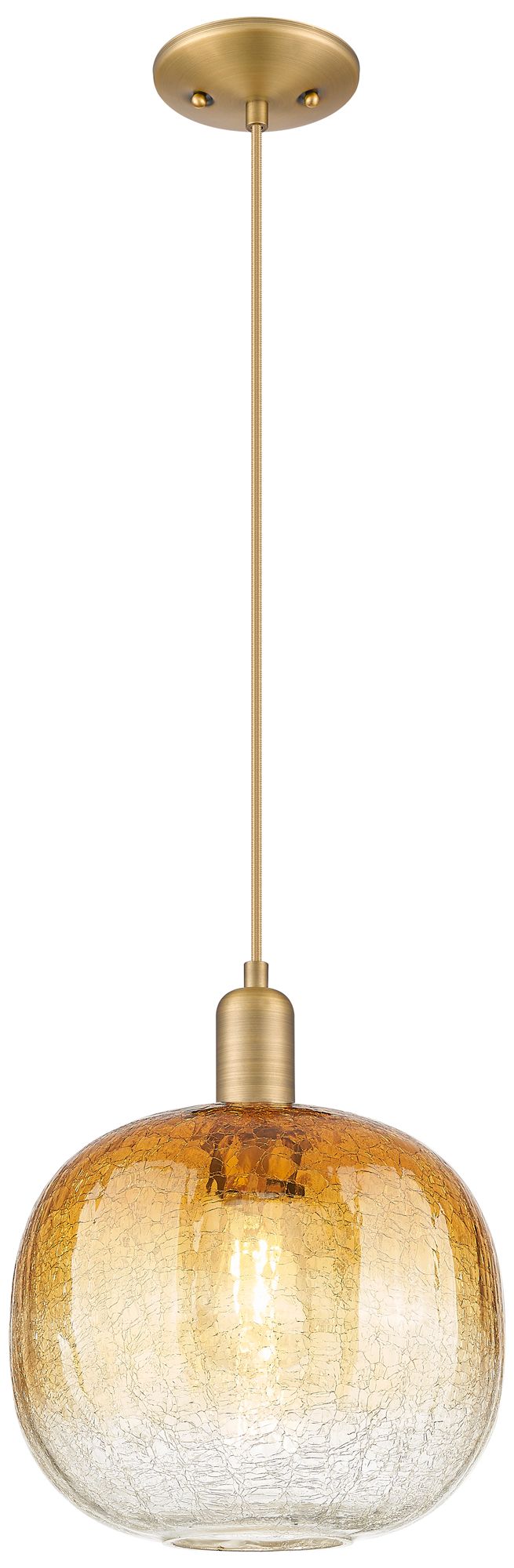 Downtown Brookhaven Sphere 10"W Cord Brass Mini Pendant w/ Amber Shade