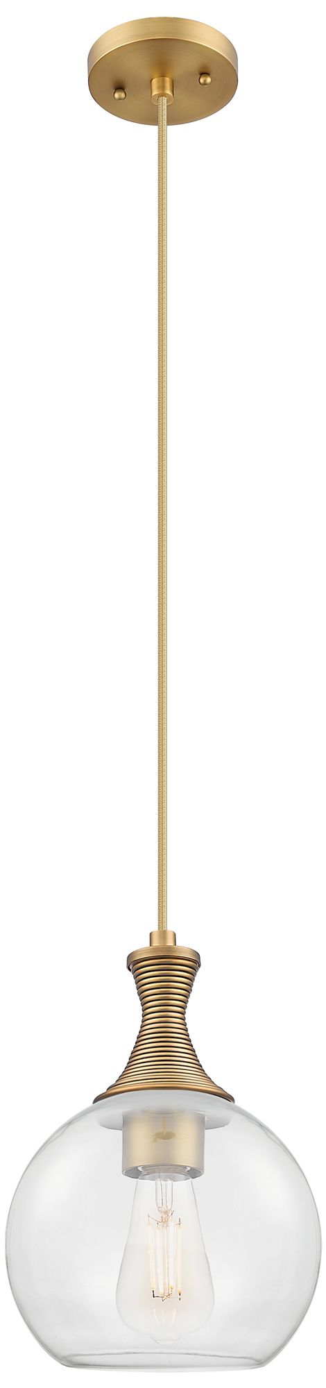 Downtown Astor 8"W Metal Cord Brass Mini Pendant w/ Clear Shade