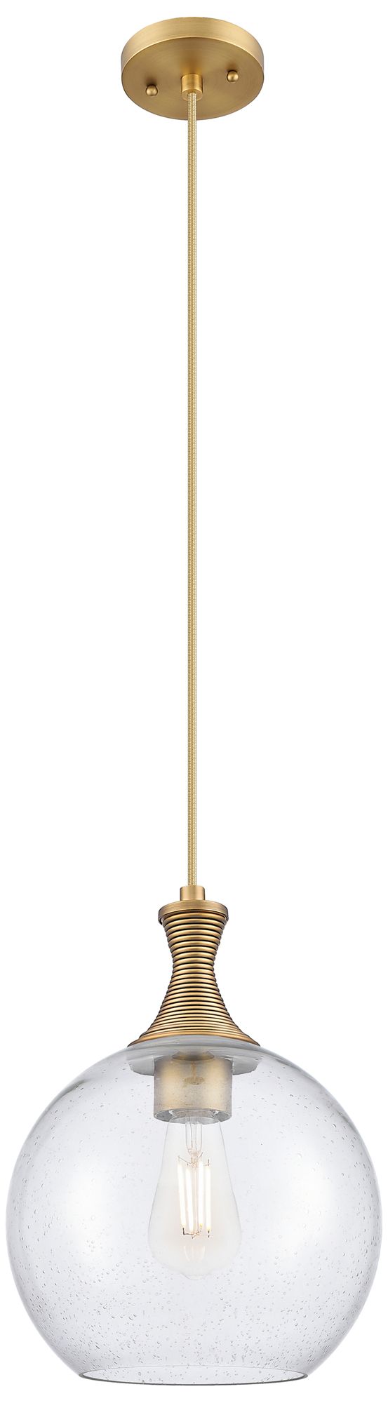 Astor 10"W Brushed Brass Metal Cord Hung Mini Pendant With Seedy Shade
