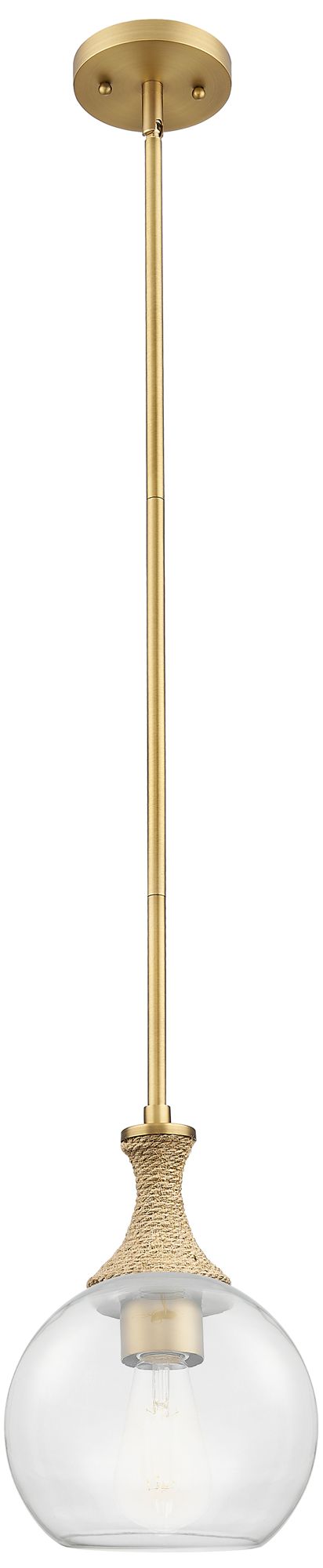 Downtown Astor 8"W Rope Stem Brushed Brass Mini Pendant w/ Clear Shade