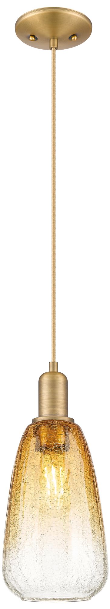 Downtown Brookhaven Almond 6"W Cord Brass Mini Pendant w/ Amber Shade