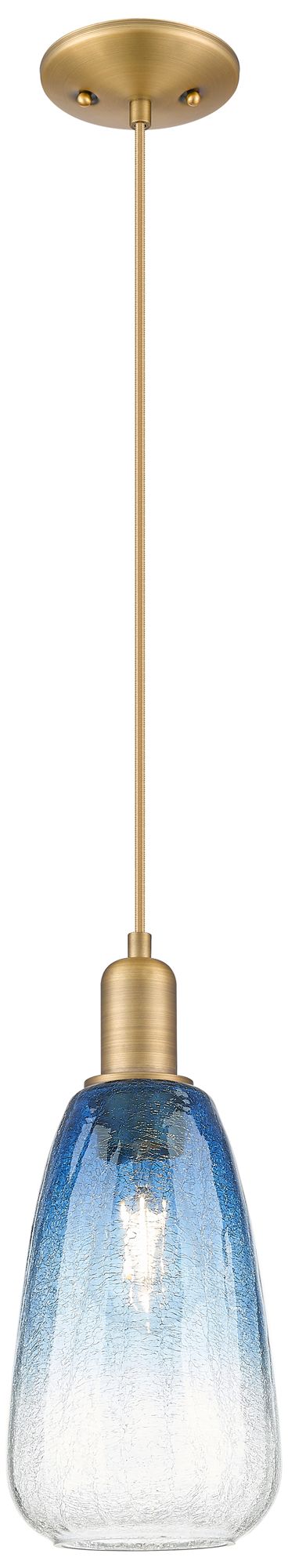 Downtown Brookhaven Almond 6"W Cord Brass Pendant w/ Sapphire Shade