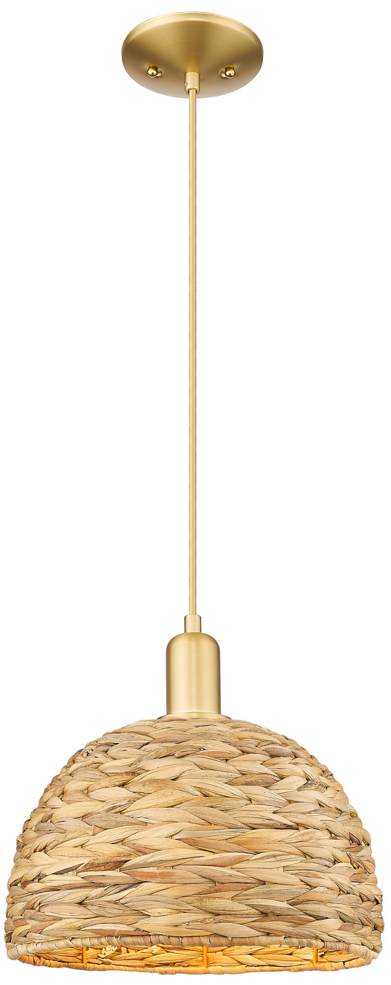 Arcadia Woven Rattan 12" Wide Satin Gold Cord Hung Mini Pendant With