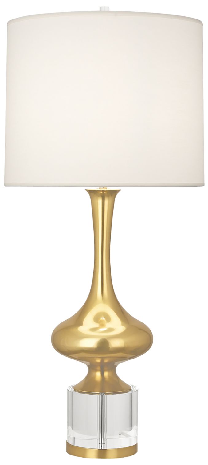 Jeannie 33.5"H Modern Brass And Lucite CRYST Lamp w/ Off White Shade