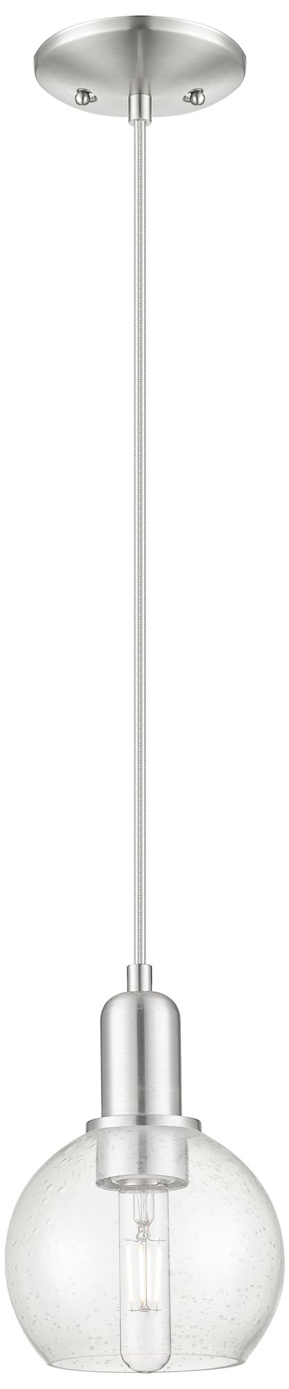 Arcadia Bristol 8"W Brushed Nickel Cord Mini Pendant w/ Seedy Shade