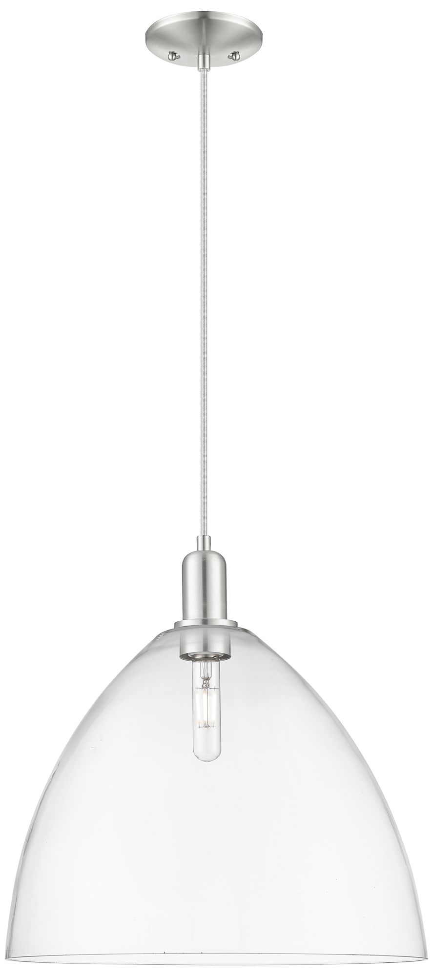 Arcadia Bristol 16"W Brushed Nickel Cord Mini Pendant w/ Clear Shade