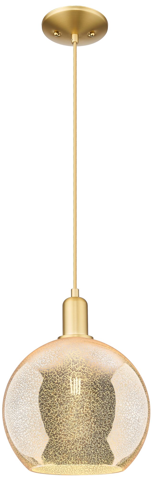 Arcadia Athens 10"W Satin Gold Cord Hung Mini Pendant w/ Mercury Shade