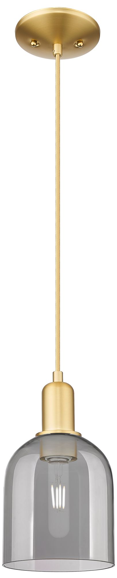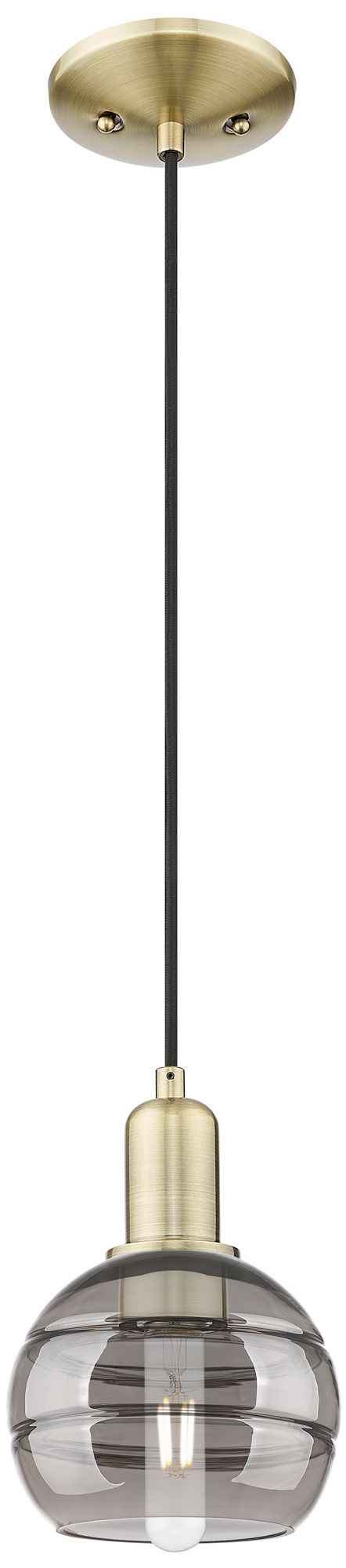 Arcadia Rochester 6"W Brass Cord Mini Pendant w/ Light Smoke Shade