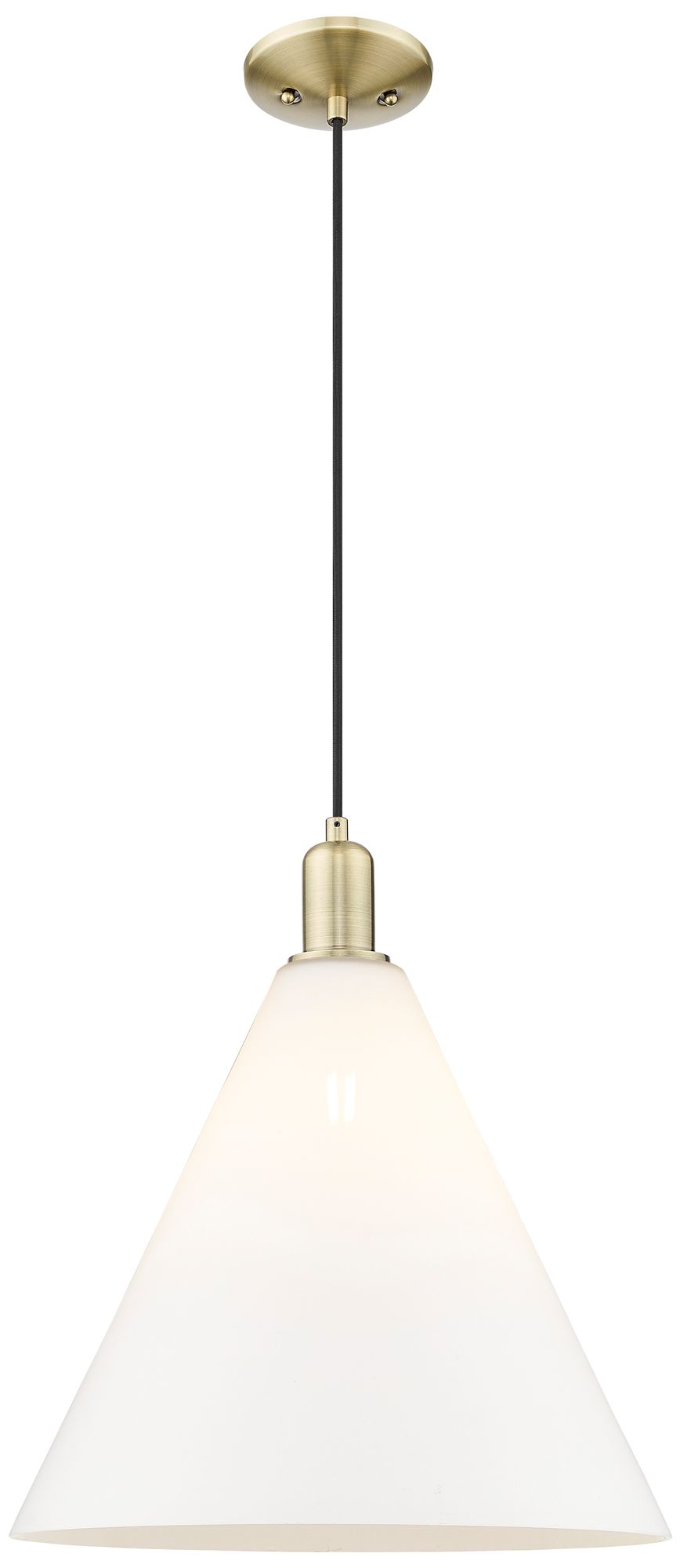 Arcadia Berkshire Glass 16"W Brass Cord Pendant w/ Matte White Shade