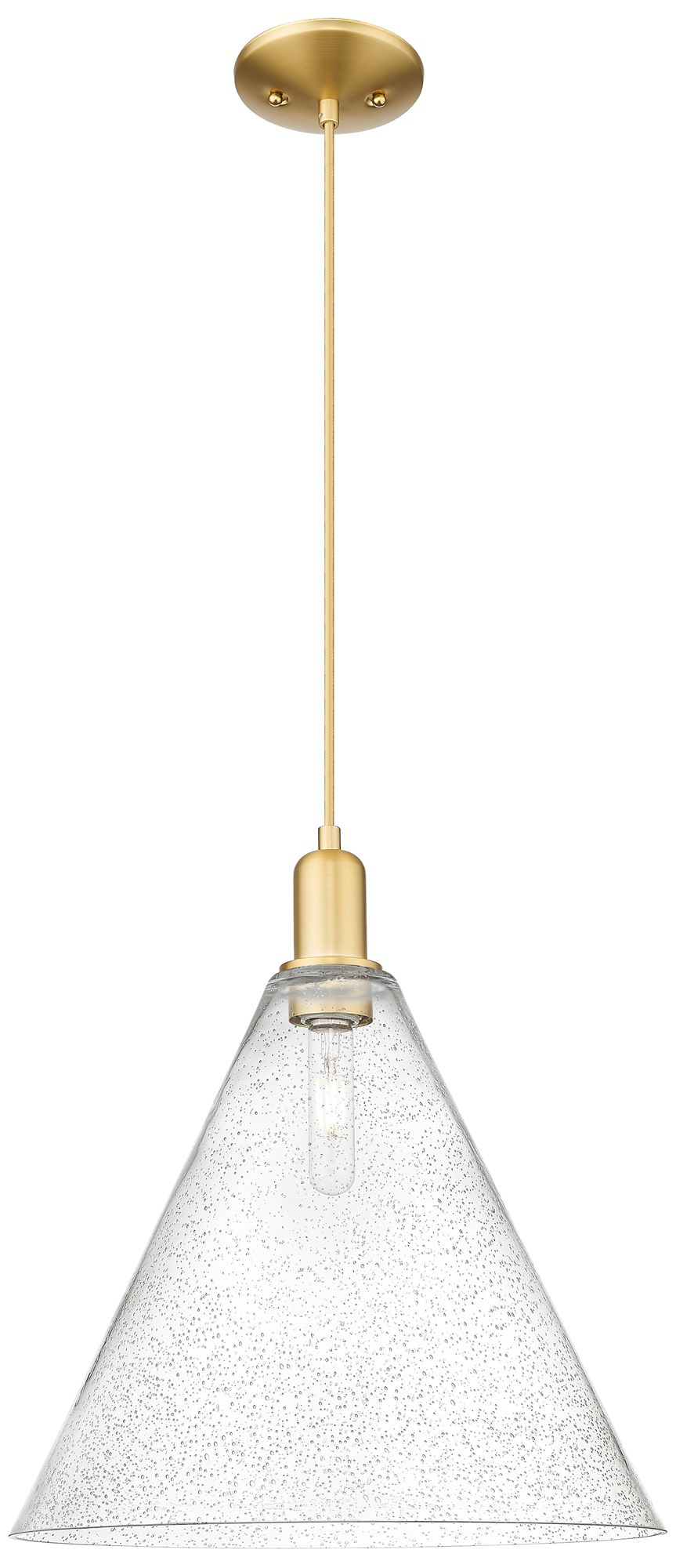 Arcadia Bristol 9"W Satin Gold Cord Hung Mini Pendant With Seedy Shade