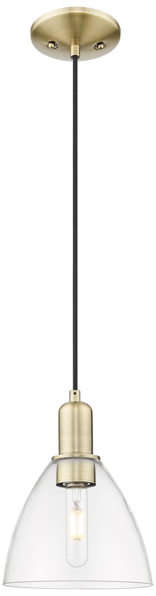 Arcadia Bristol 8"W Brass Cord Hung Mini Pendant With Clear Shade