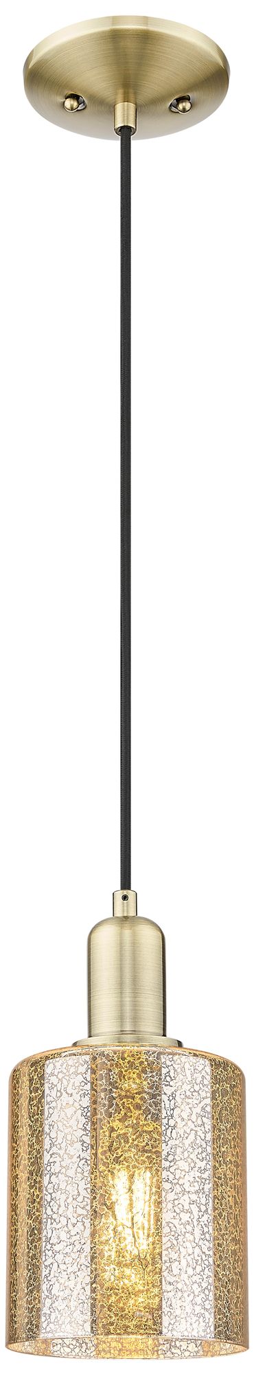 Arcadia Cobbleskill 5"W Brass Cord Hung Mini Pendant w/ Mercury Shade