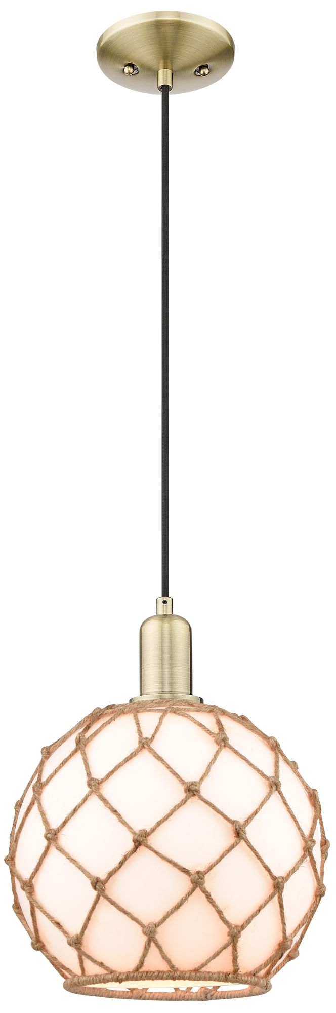 Arcadia Farmhouse Rope 10"W Brass Cord Pendant w/ White Brown Shade
