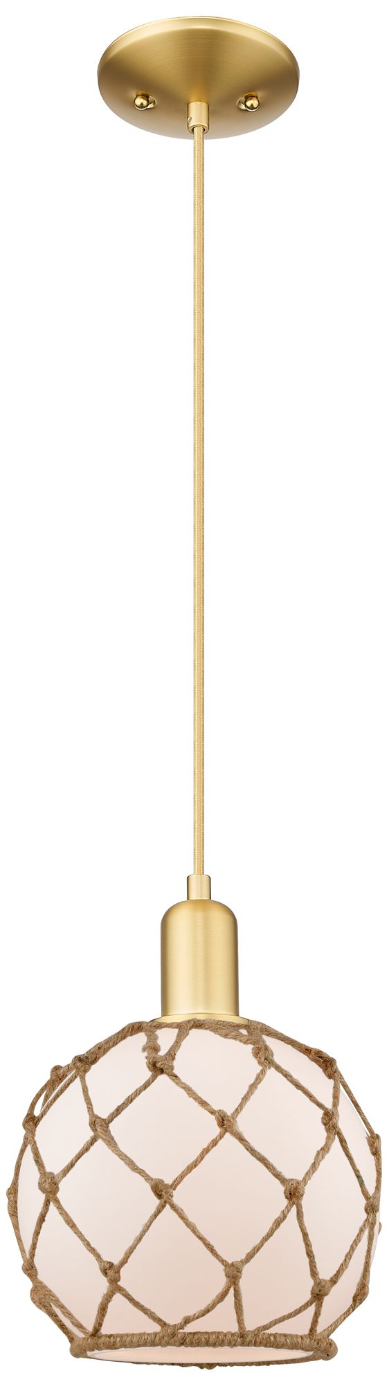 Arcadia Farmhouse Rope 8"W Gold Cord Pendant w/ White Brown Shade